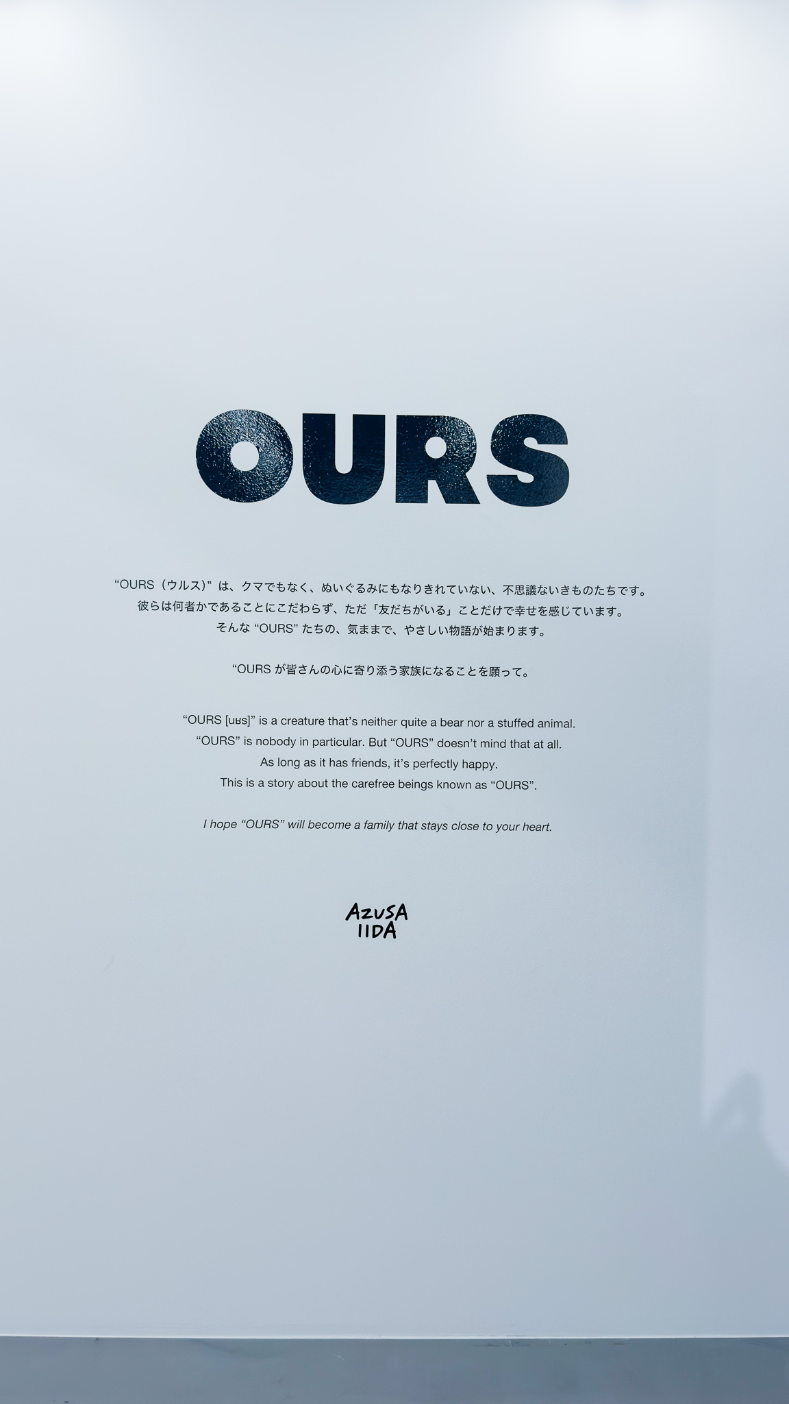IIDAさんは今までのイラストからまた違ったOURSというキャラクターを誕生させるという進化っぷり。空間からはこれはもうPEANUTSみたいになってしまうのでは…という予感もしつつとても可愛いぬいぐるみに癒される空間でした。