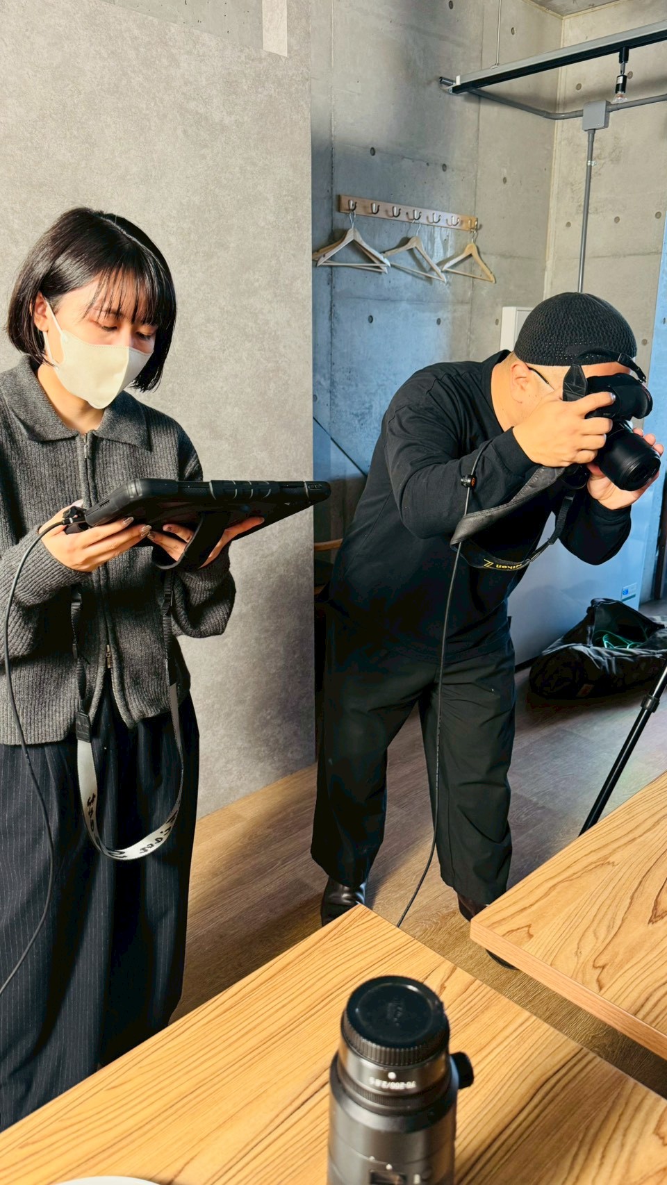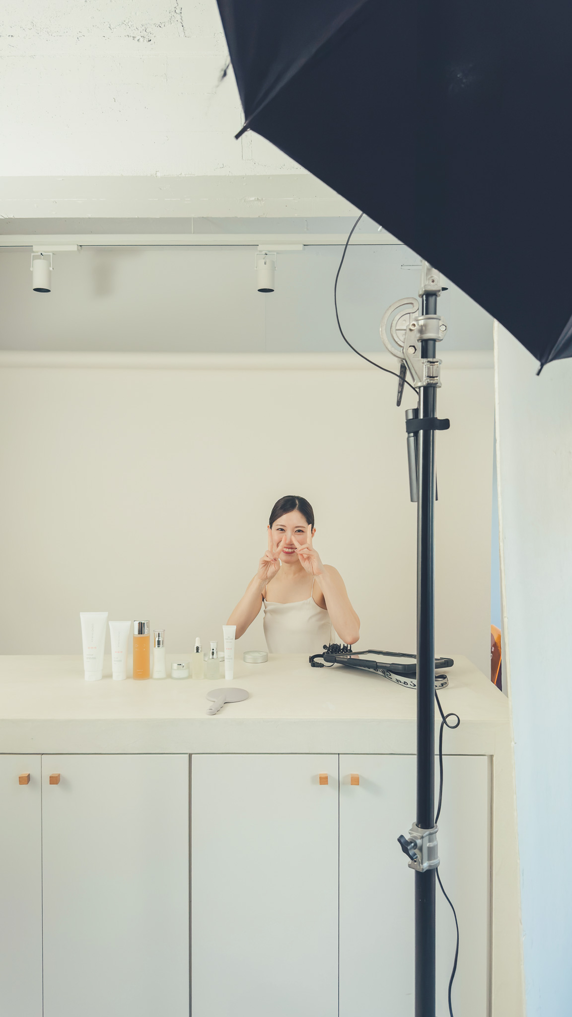 mieuxさんのコスメ撮影でモデルになったのはナベさん。事務所での撮影で頑張ってました!!寒い中お疲れ様でした!