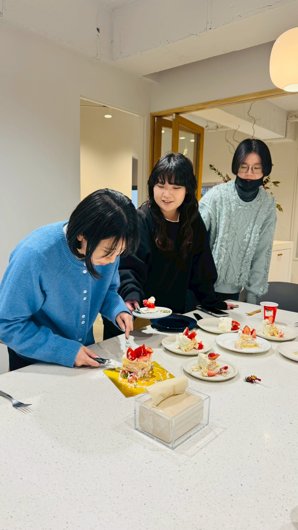 写真ないんで代わりに24日に小澤さんの一人クリスマスを回避するために会社内でクリスマスケーキを食べた時の写真を🎄ケーキはカトさんがデパ地下で並んで買ってきてくれました😊ありがとう〜