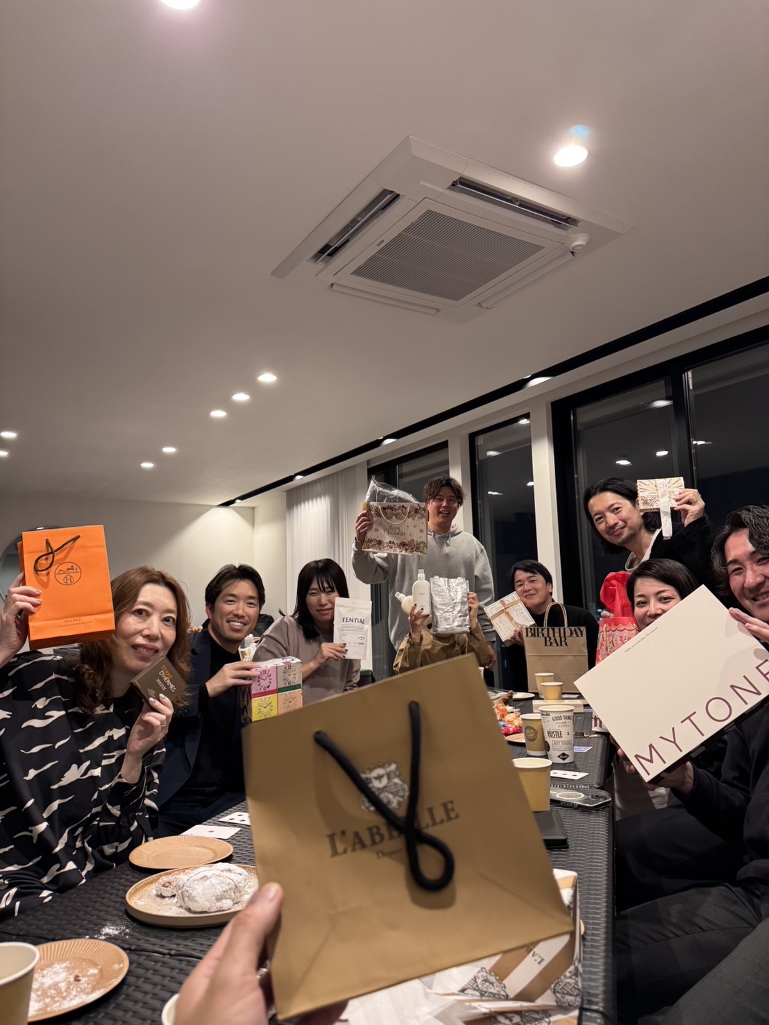 4件目は、こちらも昨年に続いて2回目の開催の保谷家忘年会。GAMO保谷さんのお宅にお招きいただいて、メンバーはAmatora浅井さん、b-ex渋谷さん、GAMO稲垣さん、hoyu佐々木さん、L’Oréal林さん、napla岸さん、美容文化大薮さん、保谷さん夫妻&アビちゃんのメンバー。みんなでご飯を持ち寄って(※僕は萌ちゃんがロゴや販促物をお手伝いしたビストロRENDEZ-VOUS(ランデブー)さんのオードブル)5,000円以内のプレゼント交換をしたりと大人たちの楽しい忘年会です🍻