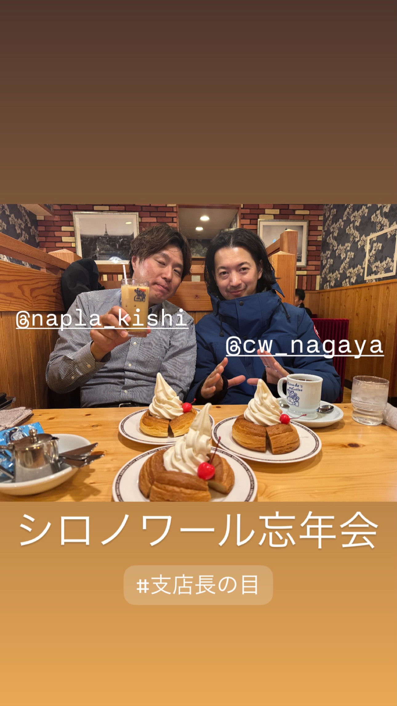 6件目は1年間を通して毎年の戦友であるGAMO保谷さん、napla岸さんとの3人忘年会。今池のピカイチ→コメダ珈琲というシロノワール締めの忘年会🍰改めて今年一年の仕事を振り返ったり、来年のことを話したりと業界考察が絶えない意外と真剣な会になりましたね😌ほんと働き者の人たちです🔥